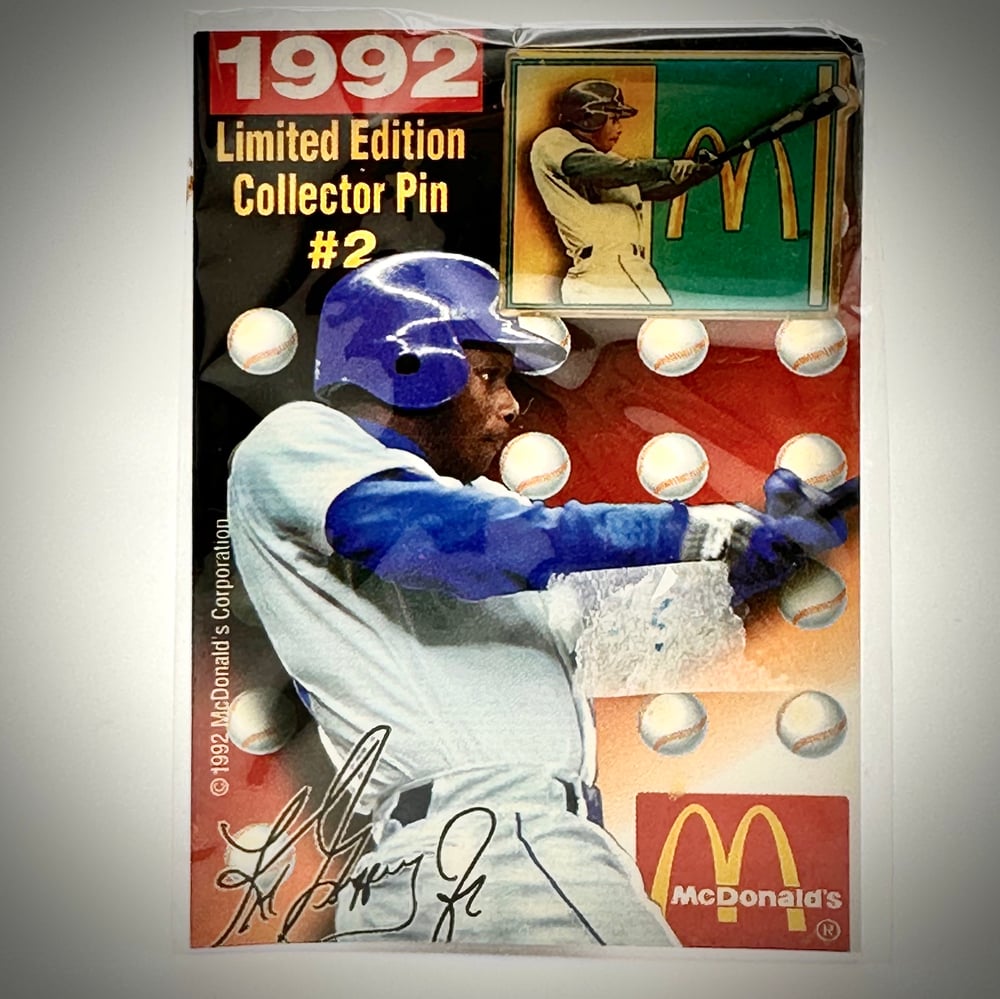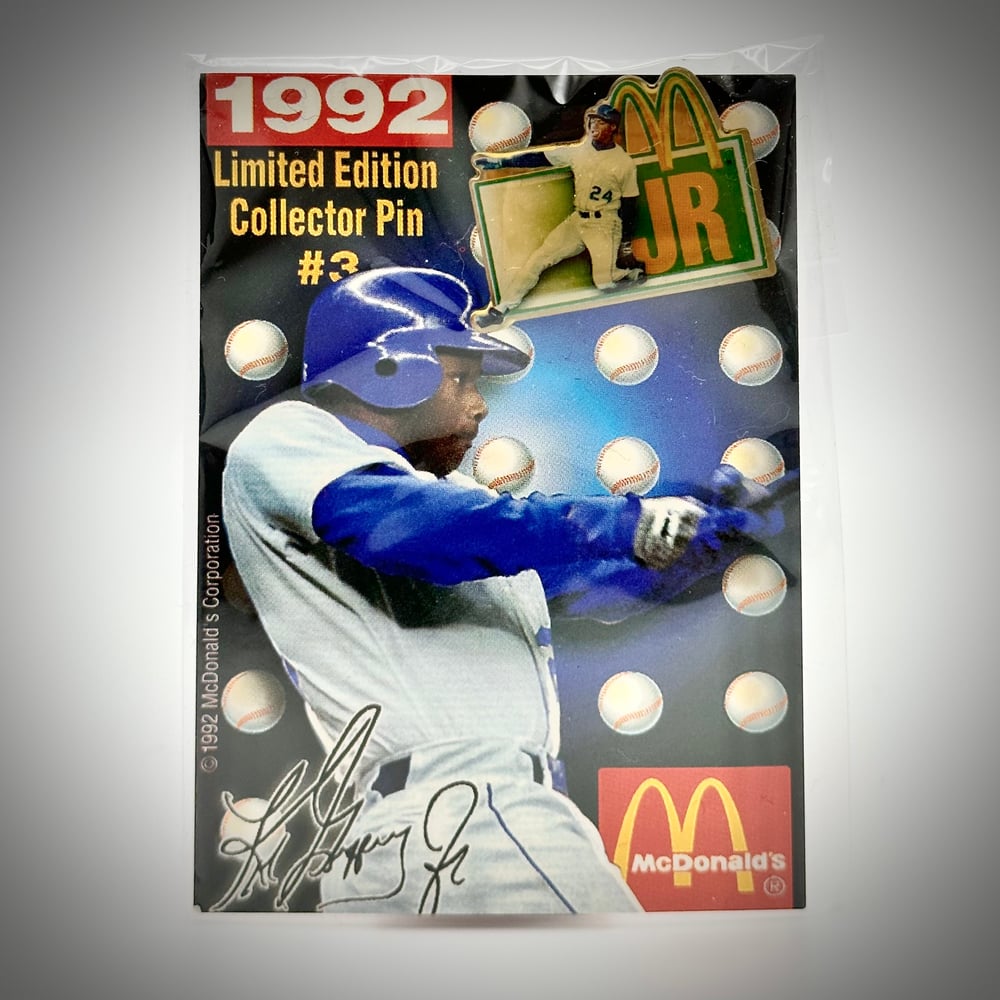 "Limited edition" pins released by McDonalds in 1992. Comes wrapped in original plastic and on a baseball card-sized backing card.